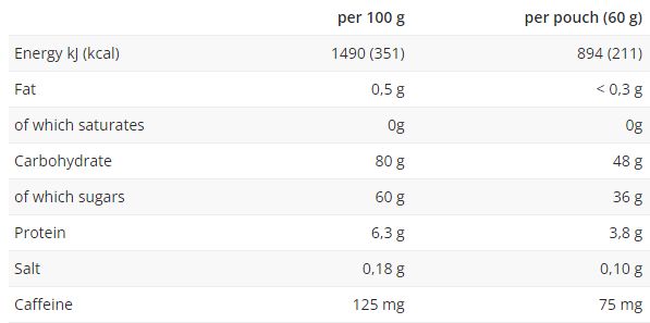 - Cola flavour: with 75 mg of caffeine per pouch – caffeine can help improve concentration