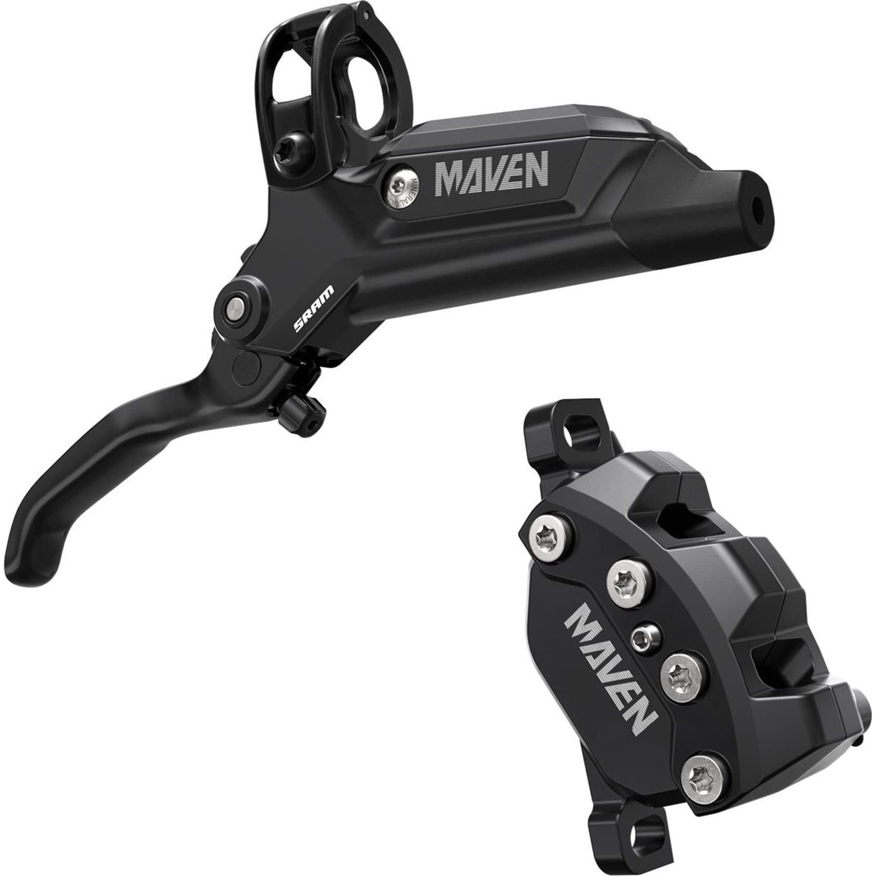 Modern mountain bikes have redefined what riders are capable of, pushing the requirements for extreme-duty power further than ever before. Maven is our answer to that evolution, giving you the boundless power of confidence for elevated speed and control on ever-more demanding terrain. Maven Base’s lever body houses Directlink, which translates rider input for a smooth application of power. And because of a stiff 4-bolt caliper that sheds an incredible amount of heat, that feel remains consistent, so the last corner feels like the first corner. And with so much baseline power on hand, there is more range than ever before to tune the ride qualities to exactly how you want with different pad materials, and rotor sizes. Maven Base features a Blast Black anodized finish, and for ease of customization includes tool-free Reach Adjust.