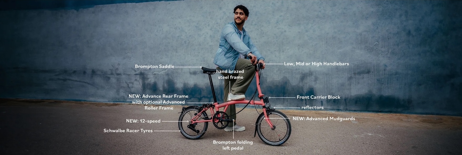 - The Brompton C Line 12-speed is the ultimate city companion, blending iconic British craftsmanship with cutting-edge portability. Proudly handmade in London since 1975, our bikes transform from a full-sized ride into a compact, locked package in under 20 seconds.