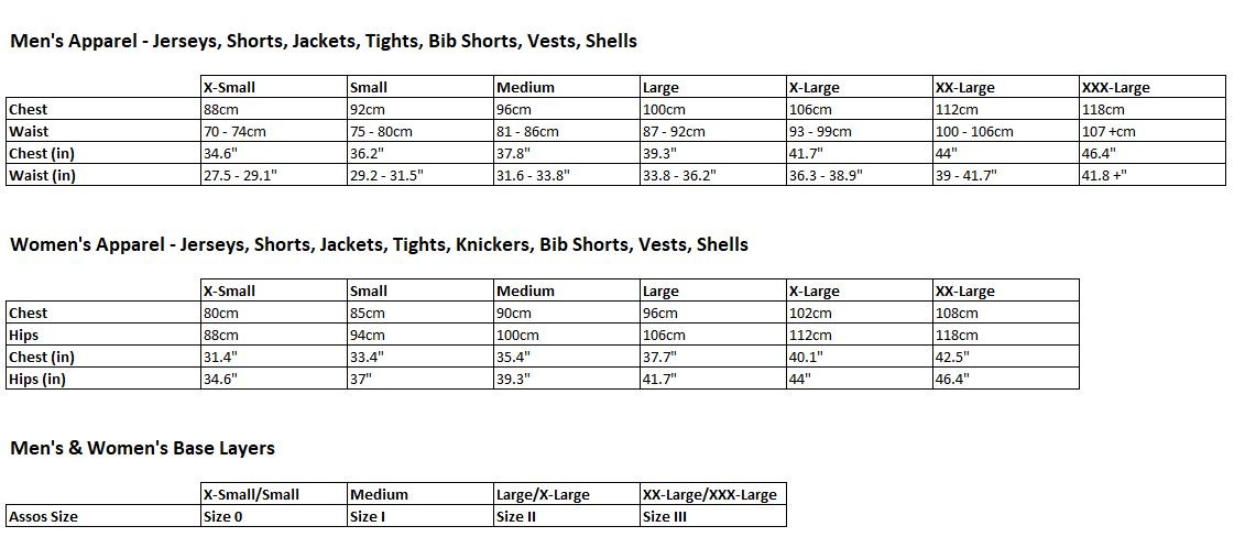 BIKE SIZE CHART