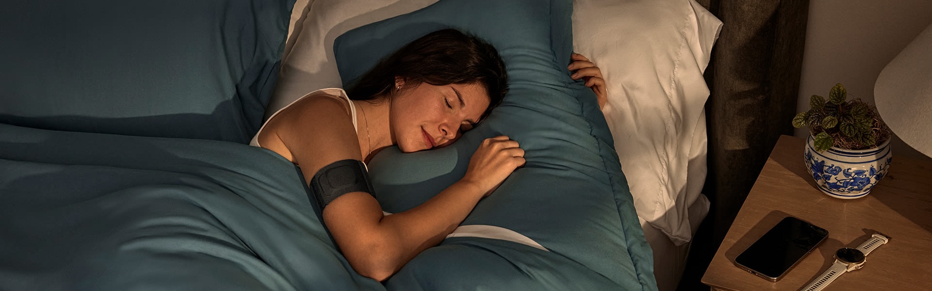 - COMFORTABLE DESIGN: Worn on the upper arm, this lightweight and breathable smart sleep band comes in two sizes, allowing you to get the data you need without compromising comfort.