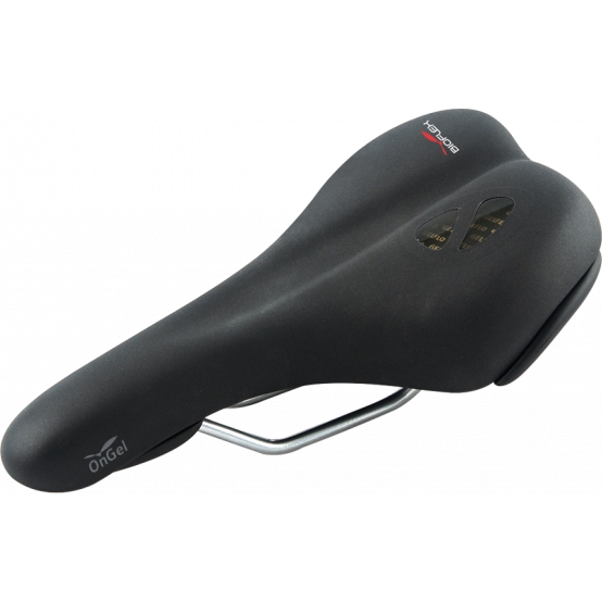 Mens specific saddles featuring super-soft Bioflex OnGel for increased comfort and support. Gel moulds to your shape to ease painful pressure points. Dampens road shocks and vibrations for supreme fluid comfort.