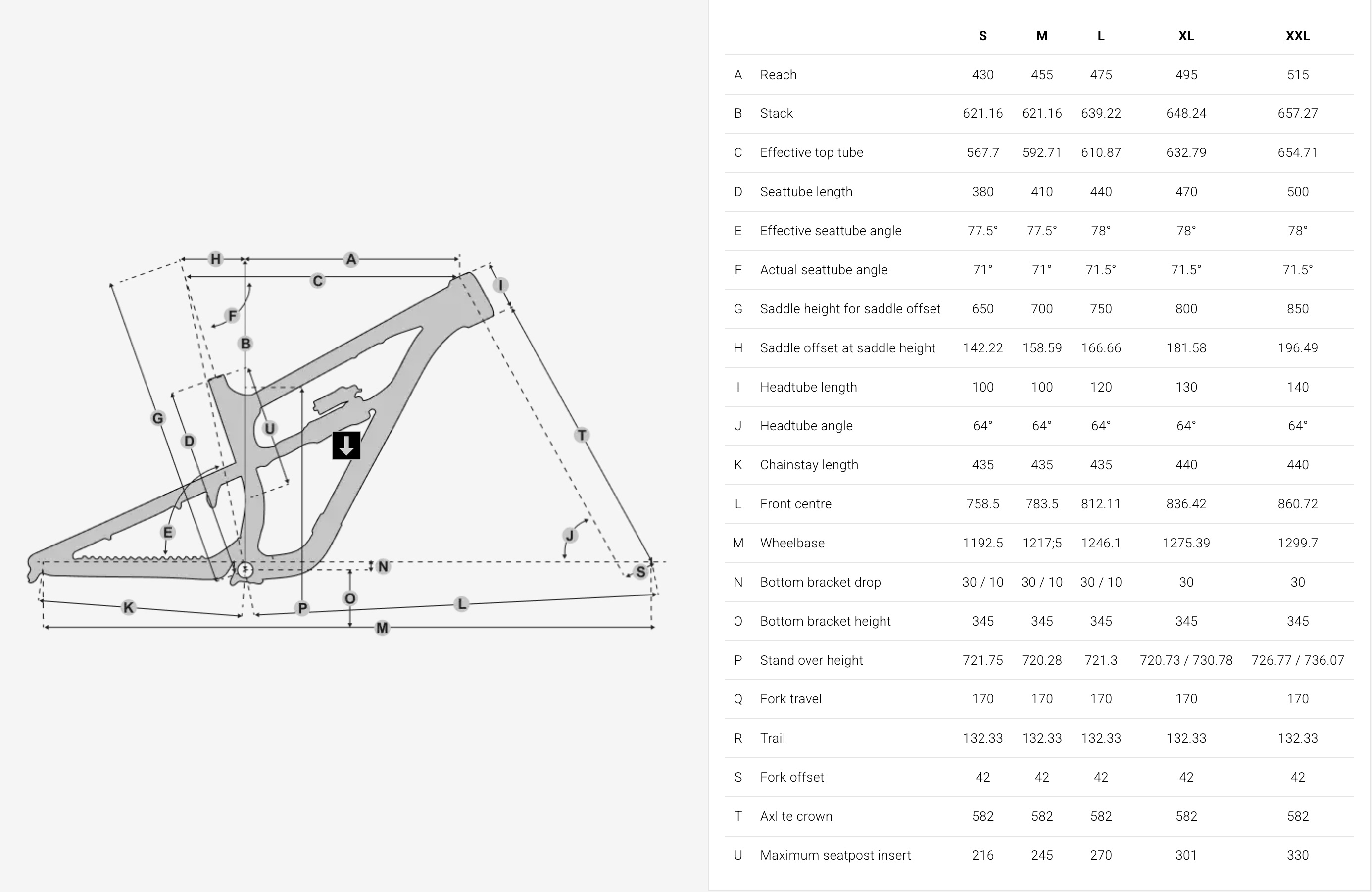 - Seatpost: Tranz-X YS108 Internal with SRAM Remote lever, S:150mm drop; M:170mm drop; L:200mm drop; XL/XXL:230mm drop