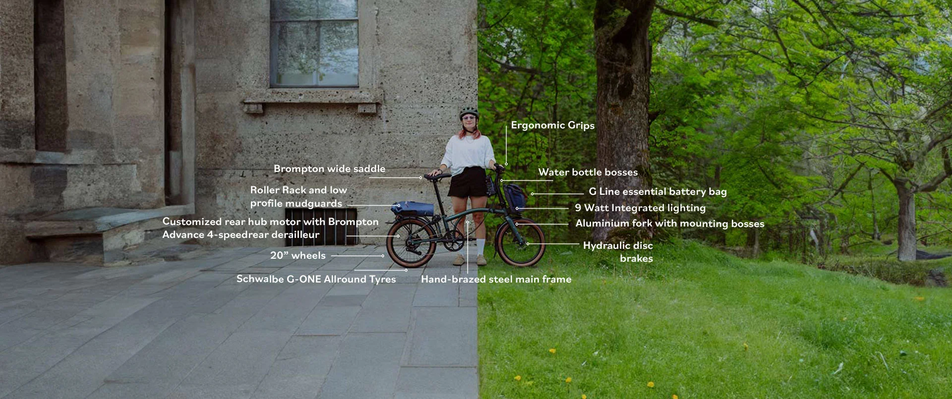 Brompton Electric G Line with Roller Frame e-Motiq system 4-speed + Handlebar Control Electric Folding Bike