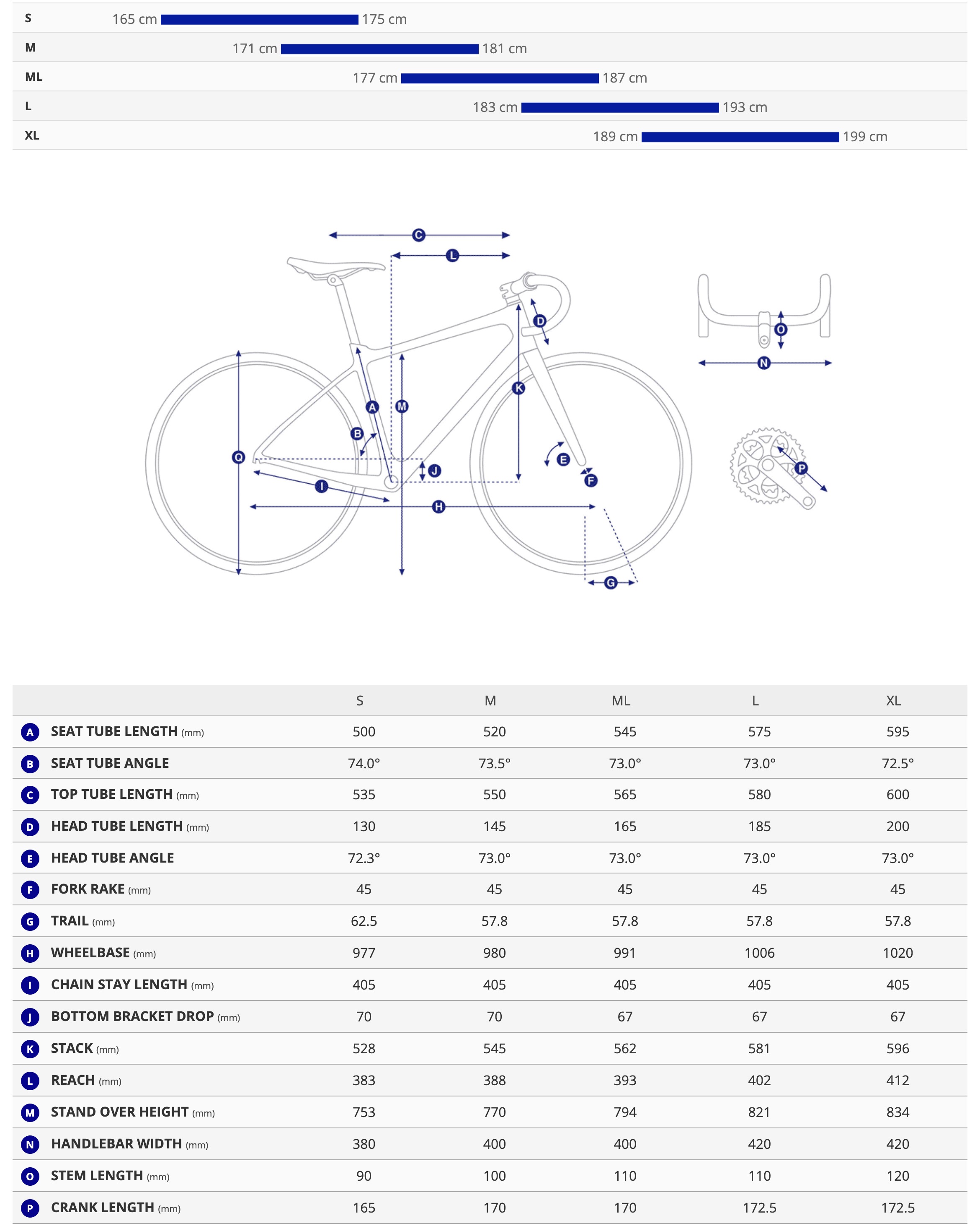 - Handlebar: Giant Contact SL Aero XS:38cm, S:38cm, M:40cm, M/L:40cm, L:42cm, XL:42cm