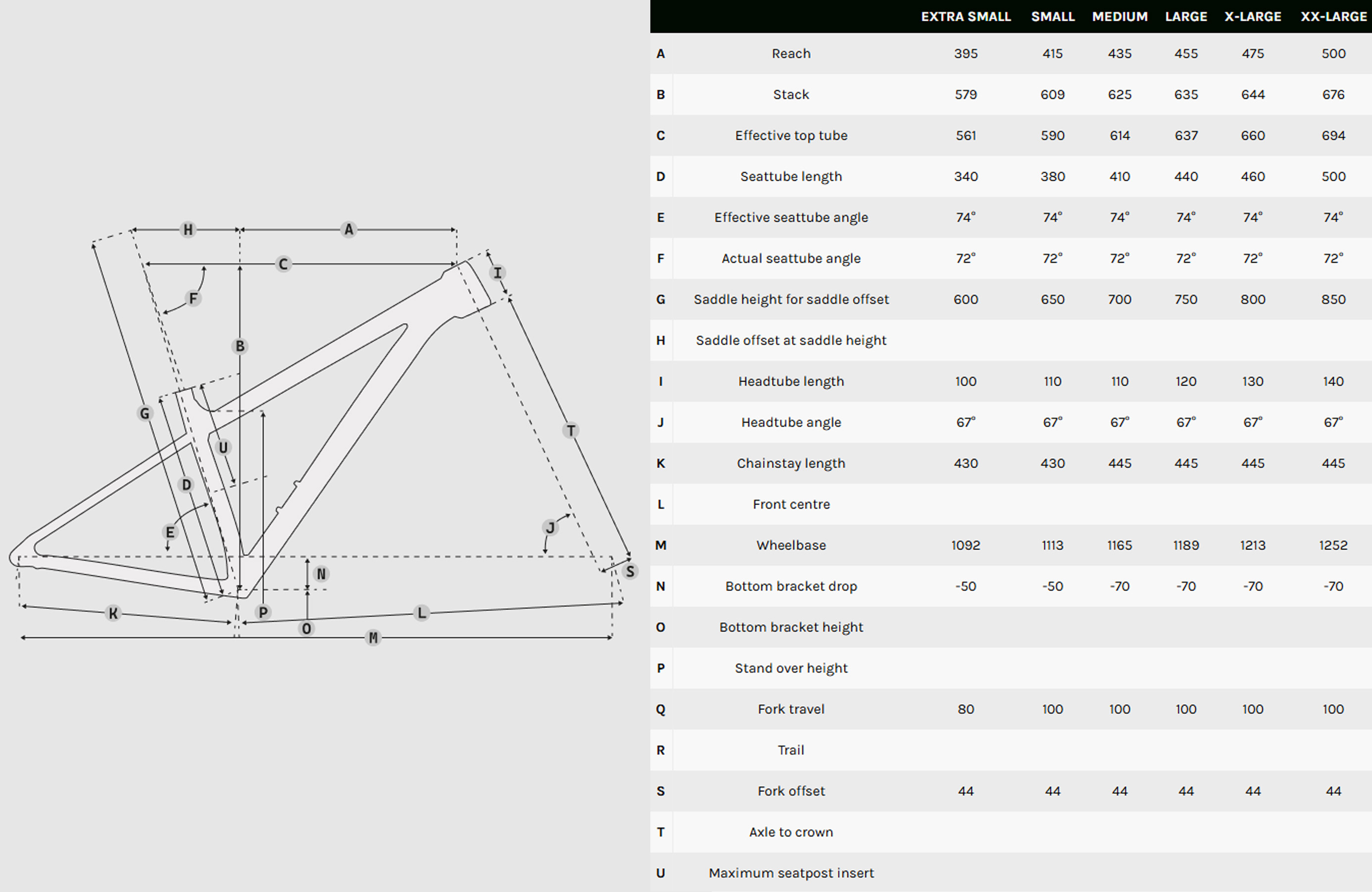 - Fork: Suntour XCM32, 80mm travel, 27.5(XS-S)/29(M-XXL) wheel, 100xQR dropout, preload adjust, coil spring, LO (lockout)