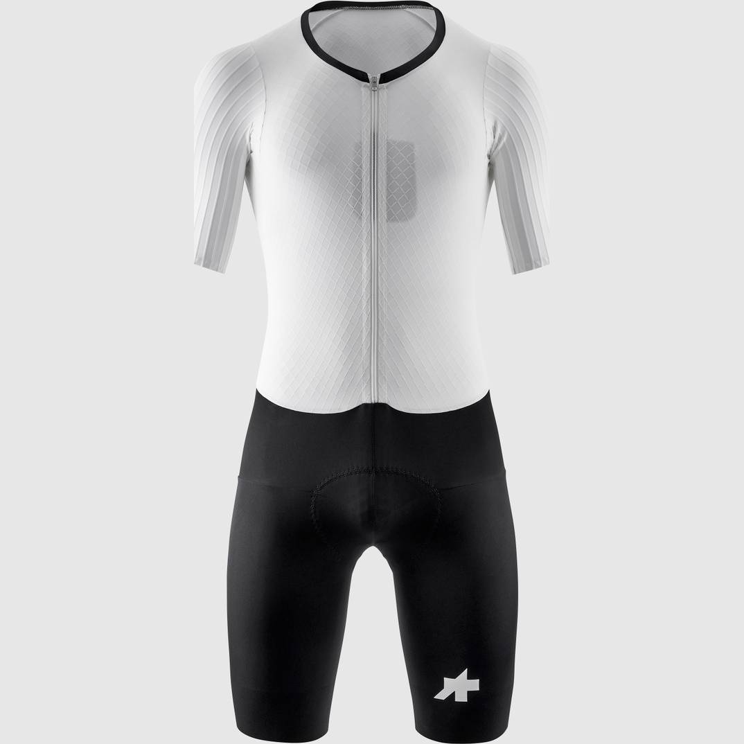 Featuring a slate of new textiles, the RAPIDFIRE Chronosuit S11 represents the pinnacle of our aerodynamic technology, proven in the wind tunnel and designed with WorldTour feedback for Tudor Pro Cycling and Swiss Cycling. The new textiles are Hawk-01 on the upper body, Eagle-01 on the sleeves and lower back, and our most compressive Kompressor material on the legs. The combination provides aerodynamic upgrades with competition-tuned compression and ultralight breathability. The insert is also upgraded, with a smaller footprint, a softer top sheet, and the decreased friction of our free-floating goldenGate 2.0 construction. Certain finishing details, like the front radio pocket and the full-length front zip, add additional aerodynamic benefits and convenience for natural breaks or unzipping while warming up. Other finishing details were omitted to eliminate weight and drag – most notably storage pockets, which confirms the RAPIDFIRE as a race-day necessity. We also recommend always using a race number in the rear window to ensure coverage against the sun.