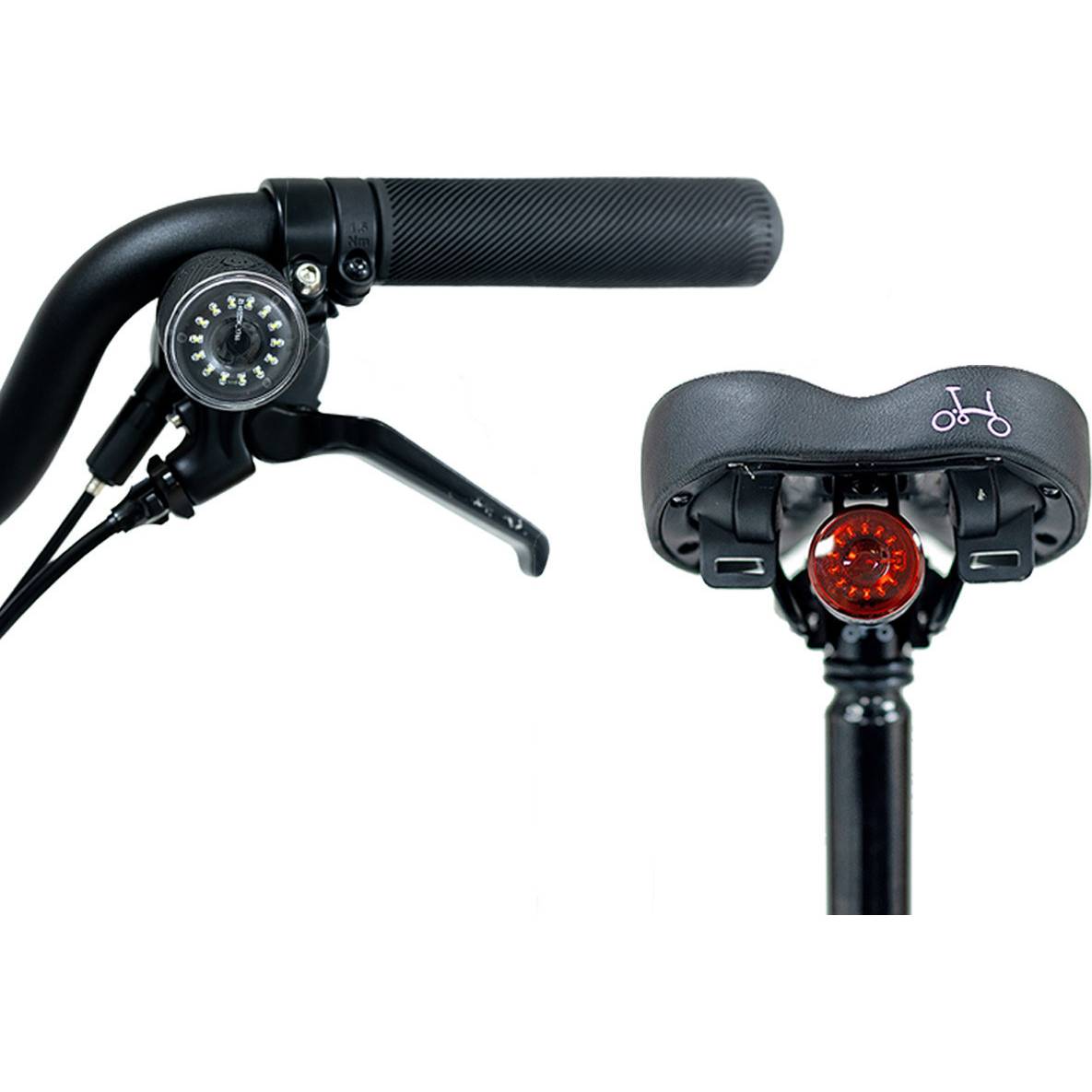 Stay seen and stay safe with Brompton Be Seen Lights—compact, USB-rechargeable, and made for city riding. Bright front and rear LEDs with multiple modes keep you visible, wherever the road takes you.