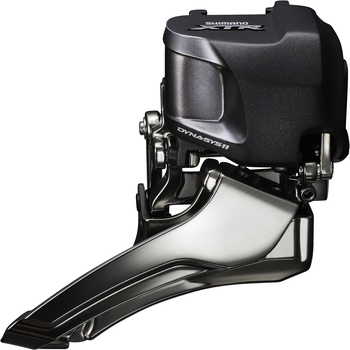 XTR Di2 Dyna-Sys 11-speed front derailleur's operation is pioneering, smooth shifting is guaranteed thanks to a microchip communication link with the gear levers. What's more, shifting the rear derailleur automatically trims the front derailleur