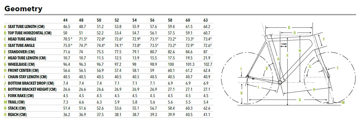 - Seatpost: Cannondale C2, UD Carbon, 25.4 x 350mm (44-56), 400mm (58-63)