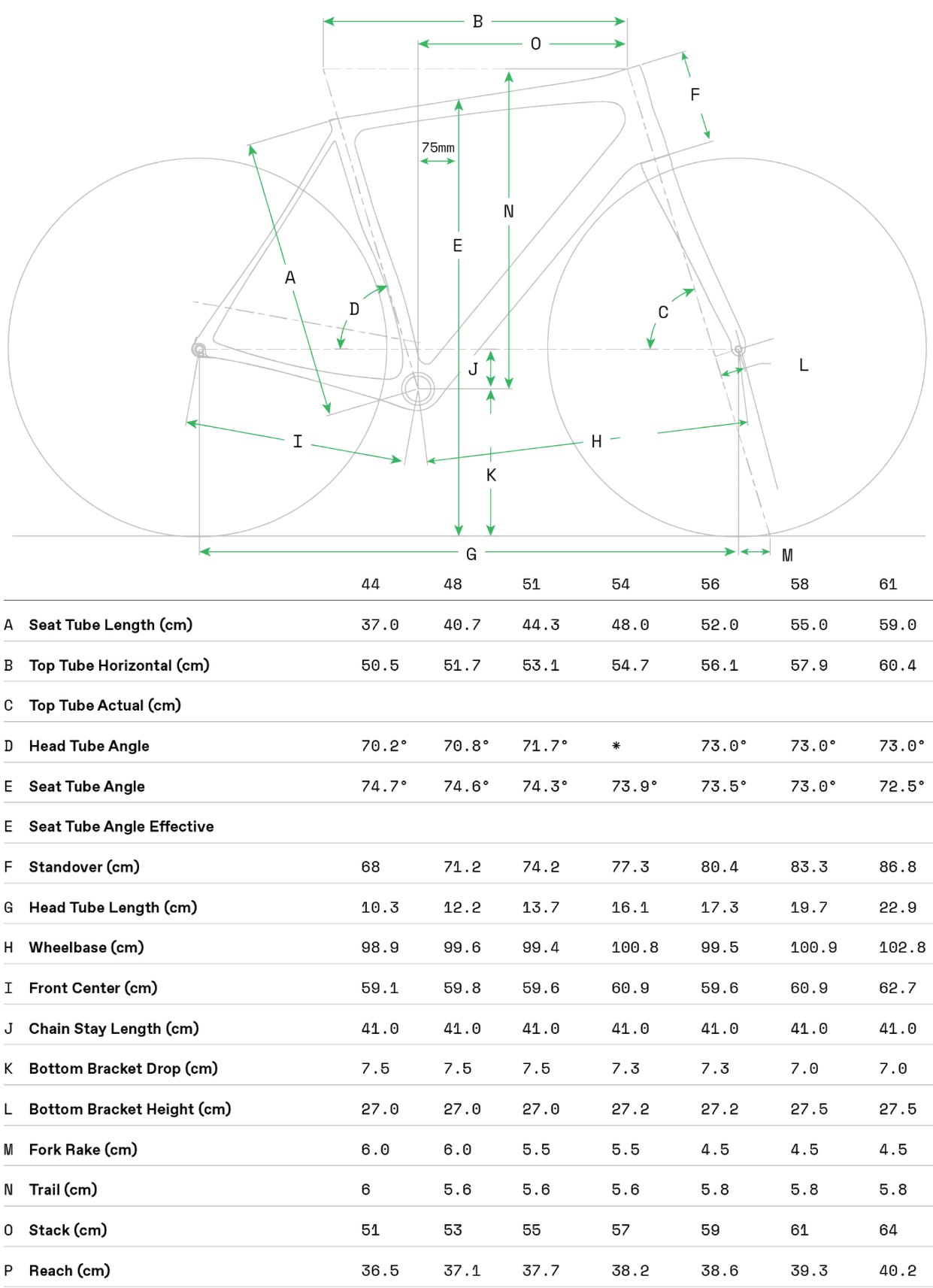 - Seatpost: Cannondale 3, 6061 Alloy, 25.4 x 300mm (48-51), 350mm (54-56), 400mm (58-61)