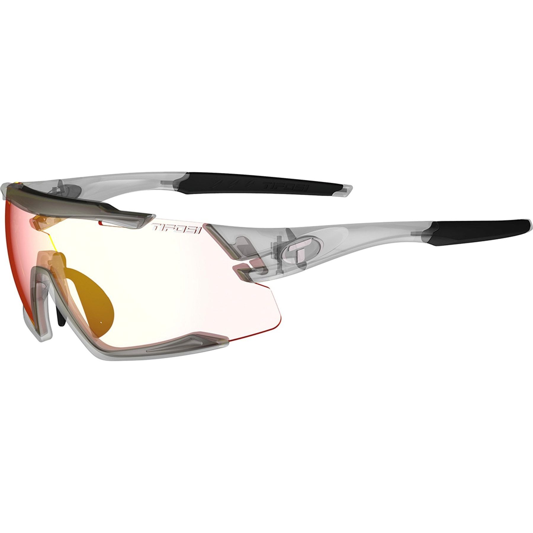 - Lens: Clarion Red Fototec – Shatterproof polycarbonate lens that repels water with a tint that starts nearly clear and darkens in sunlight to a smoke tint with red mirror