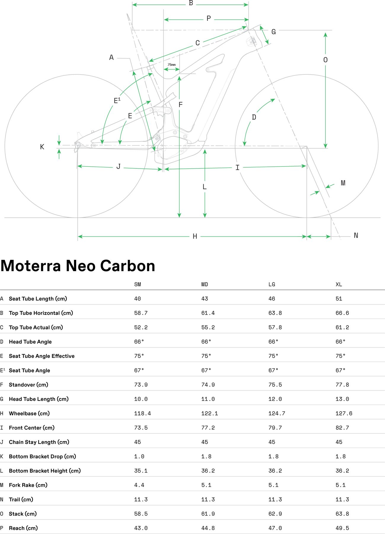 - Frame: Moterra Neo Carbon Front Triangle, SmartForm C1 Alloy Swingarm, 150mm travel, Proportional Response Tuned Suspension, removable downtube battery, alloy skid plate, 55mm chainline, internal cable routing, 148x12mm thru-axle, UDH hanger, post mount brake, 1.5? ? 1.8? tapered headtube, 18mm two-bolt kickstand mount